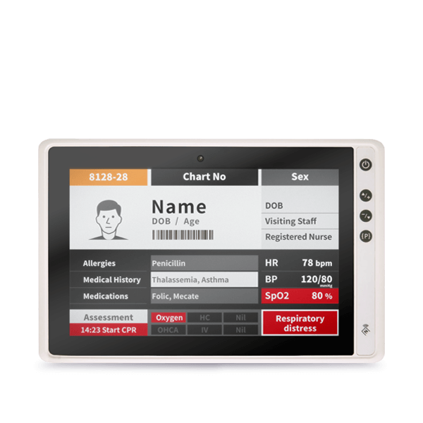 透過內建 NFC 與選配條碼掃描器,醫護人員可於院內或救護車上快速掃描身份證件、健保卡或手環,精準建立病人資料並同步至 HIS/EMR 系統,有效提升急診與住院流程效率。 |